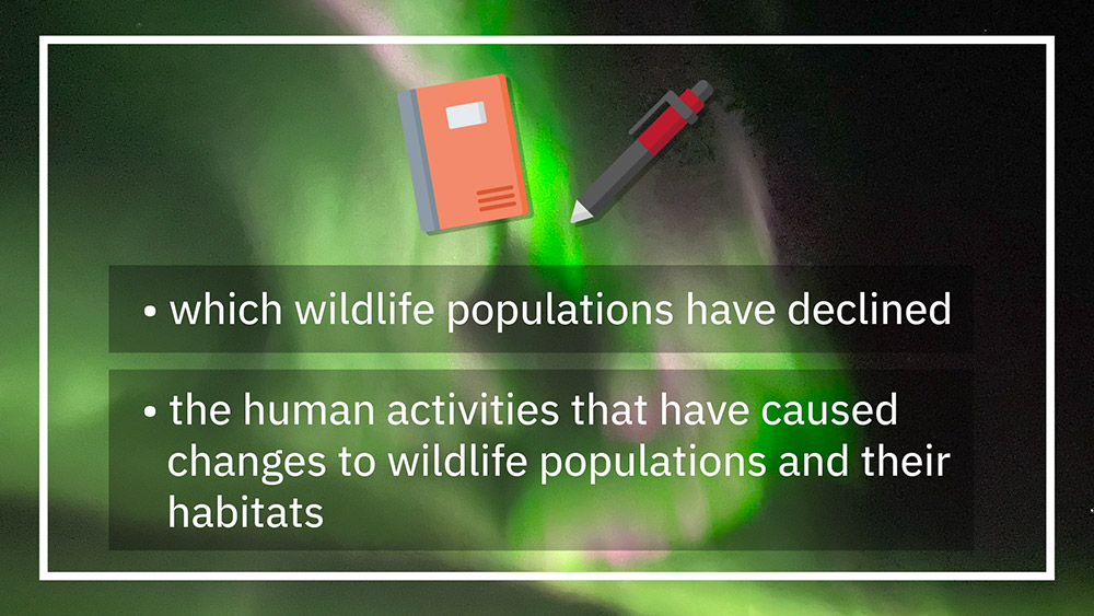 This presentation gives instructions to create a brochure about a local wildlife species, its habitat, and how it is impacted by human activities and local industries.