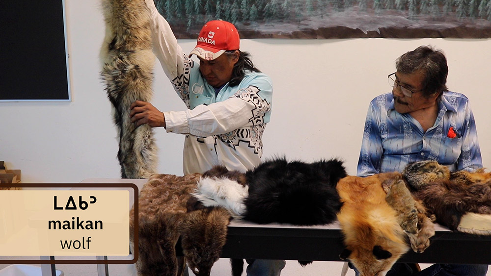 See pictures from a video where Knowledge Keepers Archie Ribbonleg and Jimmy Tallcree share their knowledge about the wolf, fox, coyote, lynx, rabbit, and squirrel. They name the characteristics and uses of furs and why furs are important to people in Little Red River.