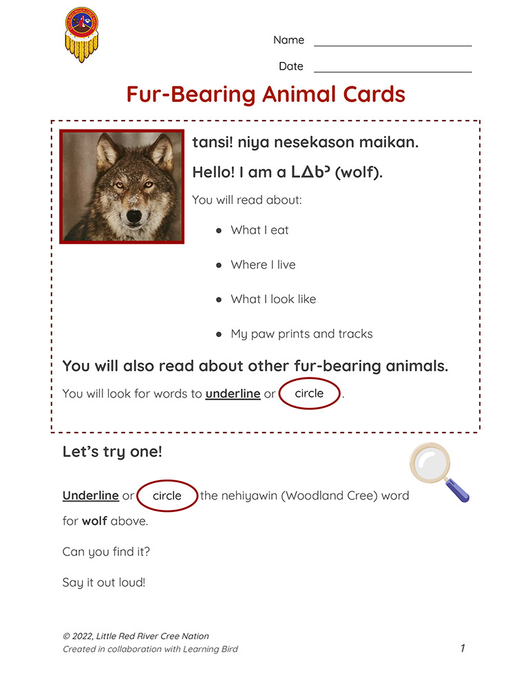 In this presentation, learners practice reading and pronouncing the Woodland Cree names of fur-bearing animals and match each animal to its fur.