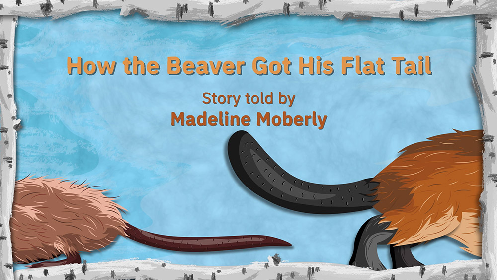 In the animated video “How the Beaver Got His Flat Tail,” as told by Madeline Moberly, Wesaketchak helps tell the story of how Beaver and Muskrat got their tails.