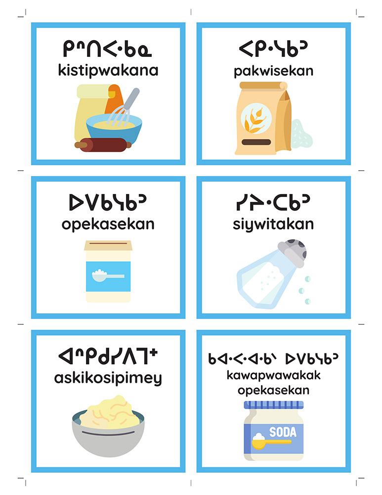 In these resources, learners practice reading, writing, and pronouncing the ᐸ ᐯ ᐱ ᐳ syllabics.