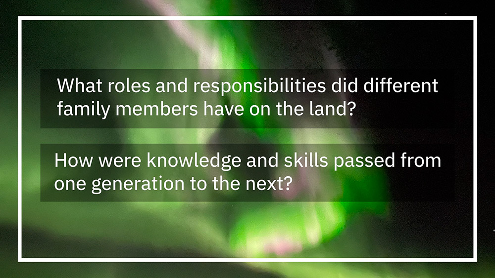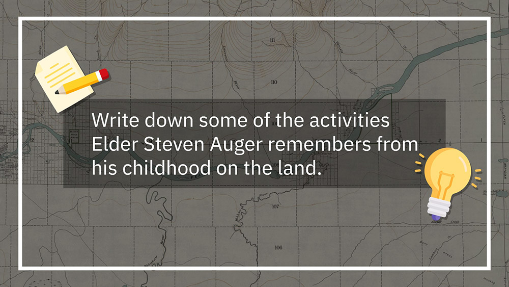 See pictures from a video in which Elder Steven Auger shares childhood stories of being on the land with his family. Learners reflect on family members’ different roles and responsibilities and how families pass down skills to the next generation.