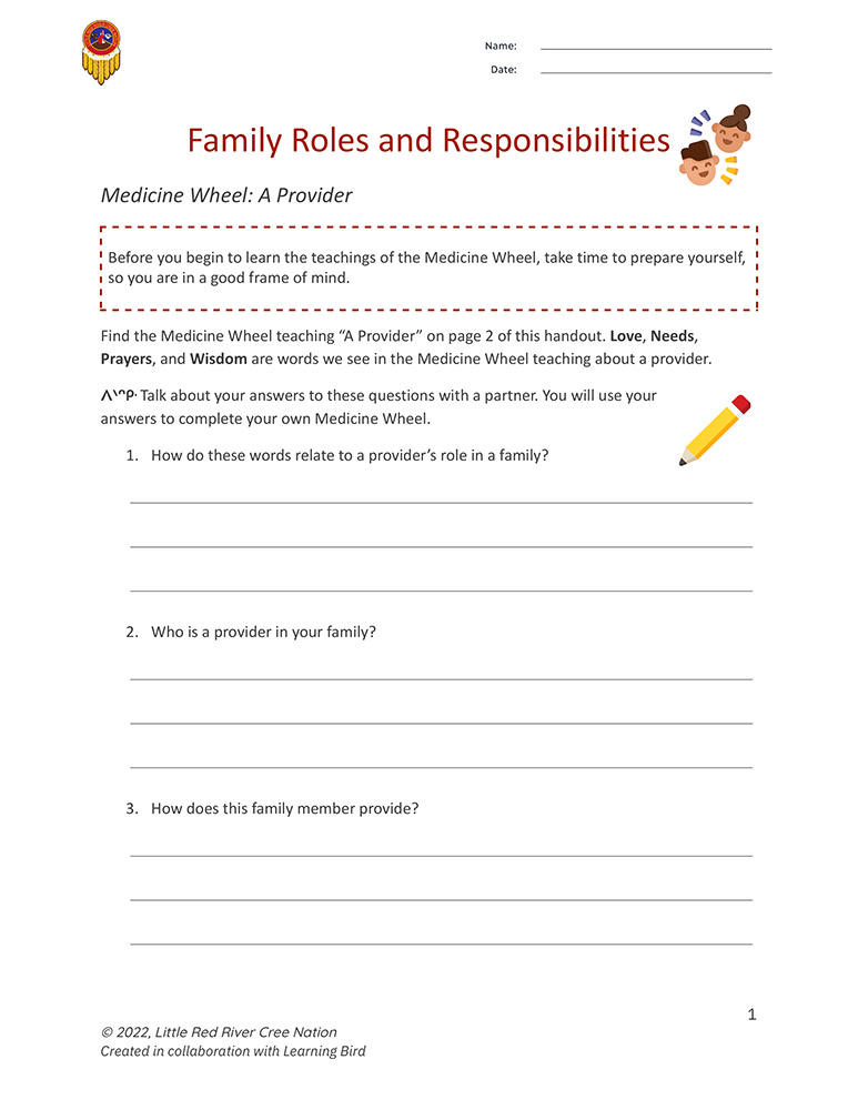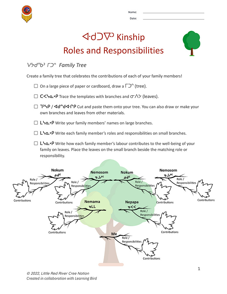 In this handout, learners demonstrate their understanding of kinship roles and responsibilities by creating a family tree that celebrates family members’ contributions.
