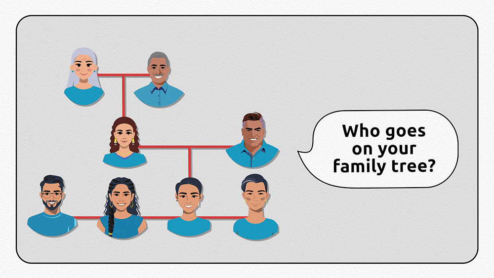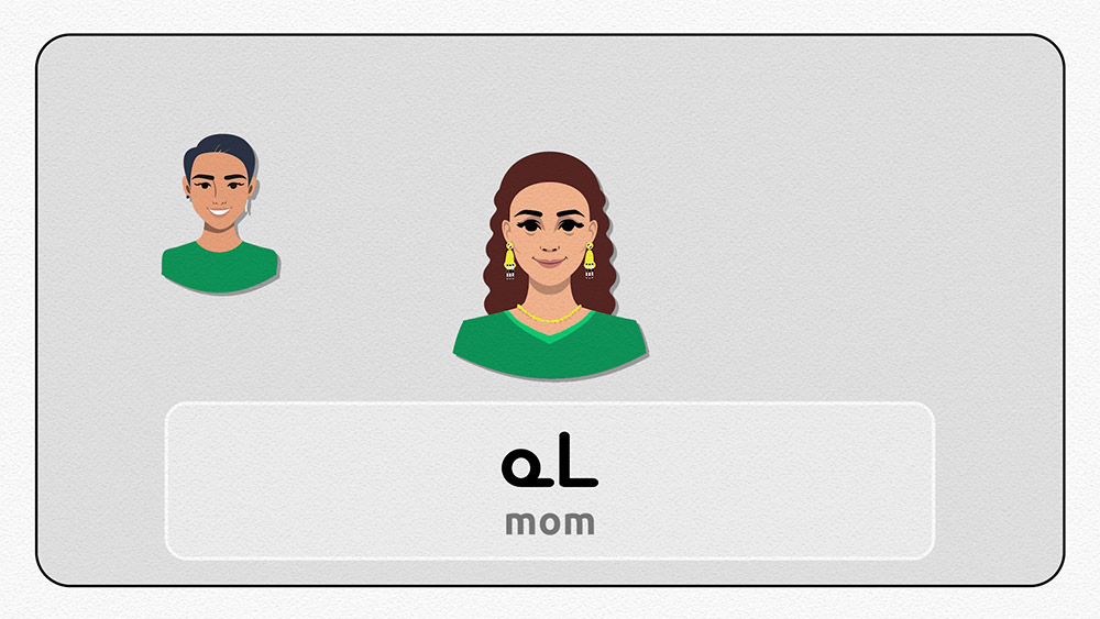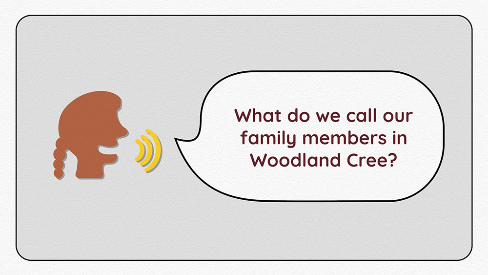 See pictures from a video where learners see, hear, and practice pronouncing kinship vocabulary in Woodland Cree.