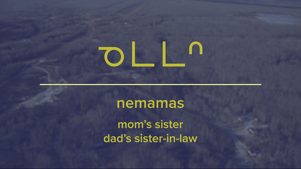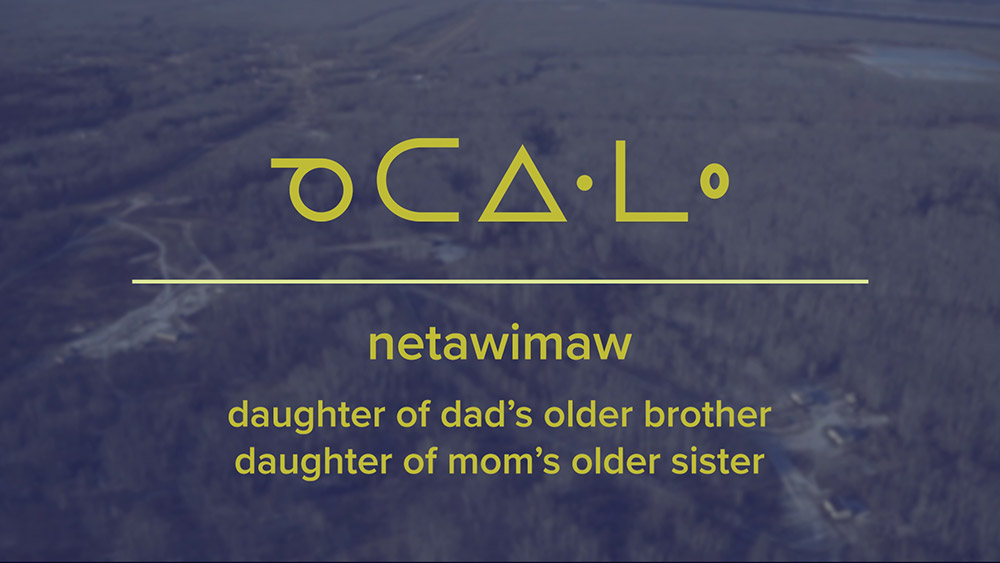 See pictures from a video that pronounces and shows Woodland Cree vocabulary for female relations.
