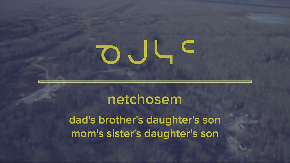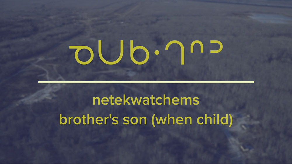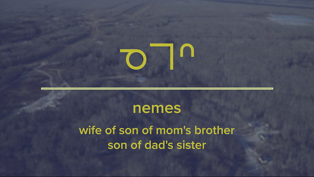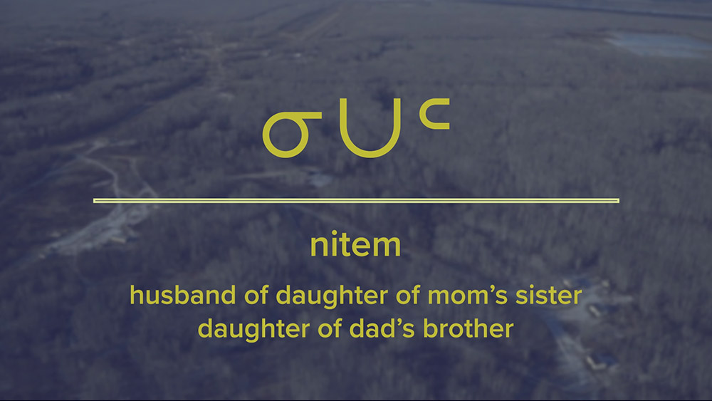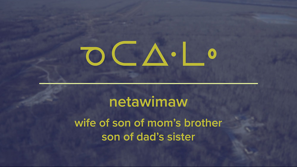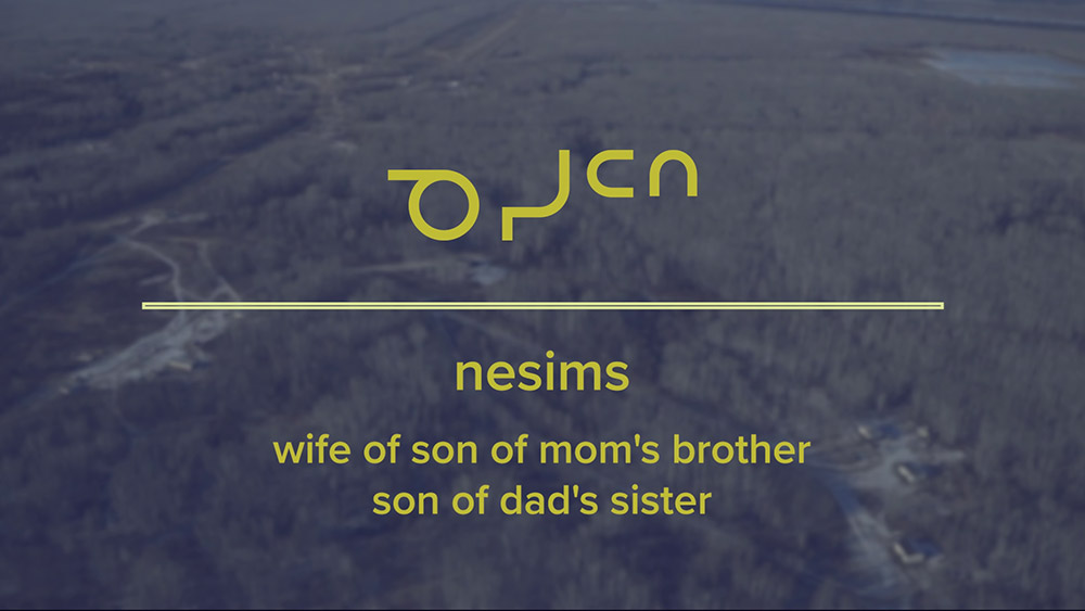 See pictures from a video that pronounces and shows Woodland Cree vocabulary for male relations.