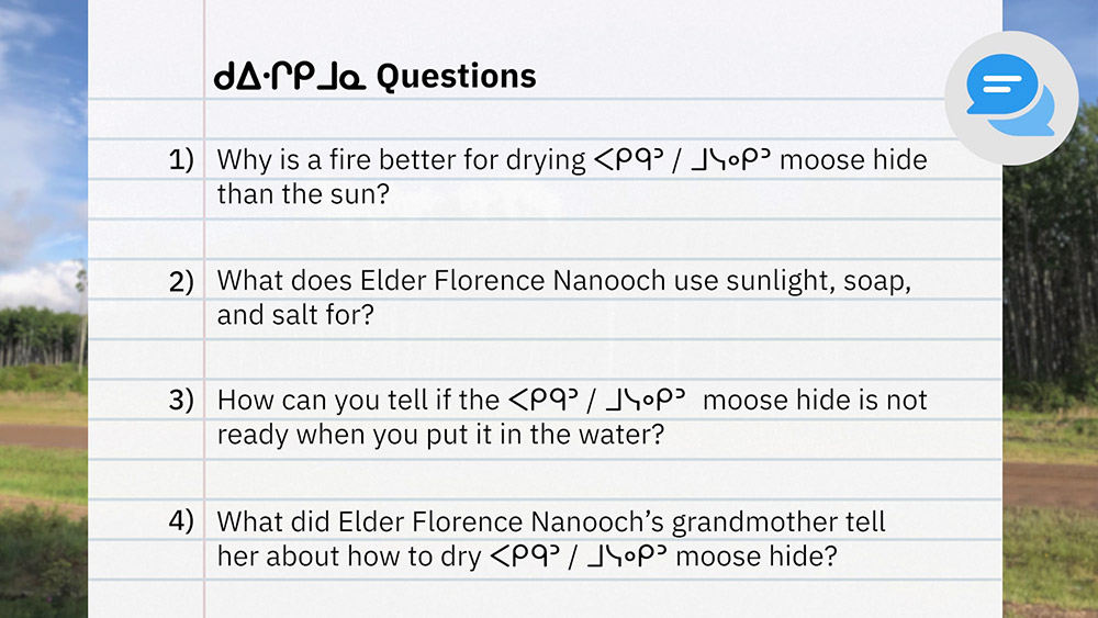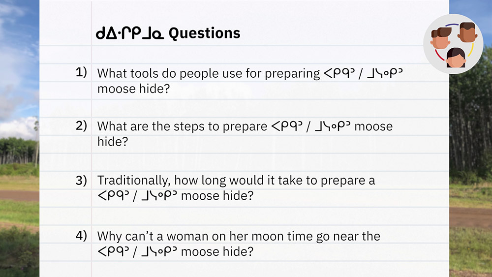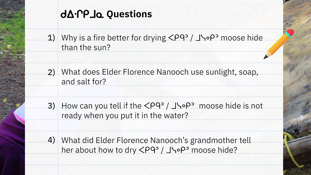 In this presentation, a note-taking organizer helps learners remember the steps to preparing moose hide.