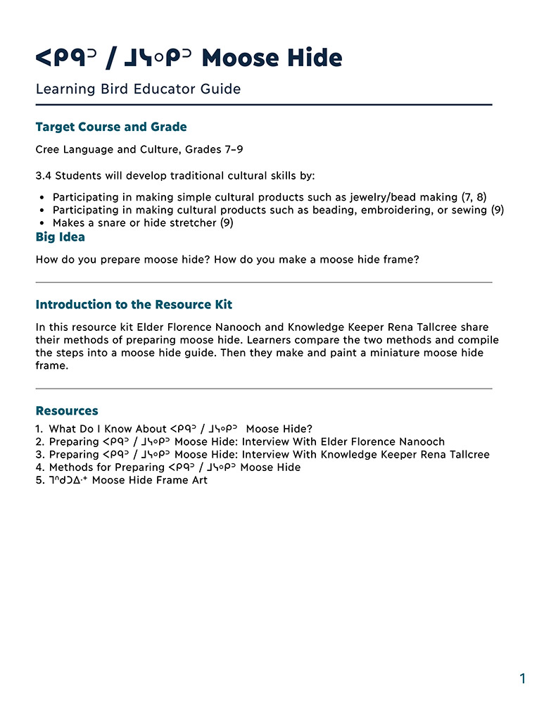 In these resources, learners hear about two methods of preparing moose hide as shared by Elder Florence Nanooch and Knowledge Keeper Rena Tallcree. Learners make notes on each step in the process, then create a miniature moose hide frame.
