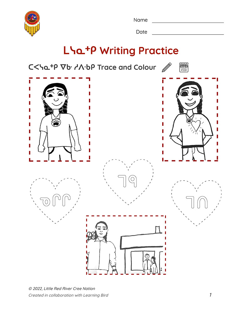 This handout asks students to trace, read, and pronounce Woodland Cree words about kindness.