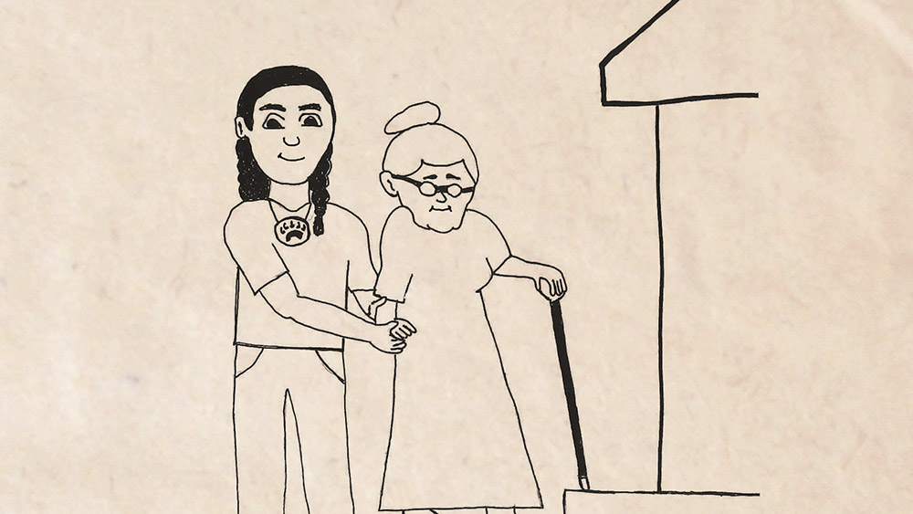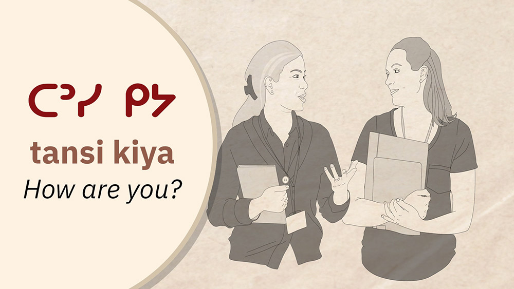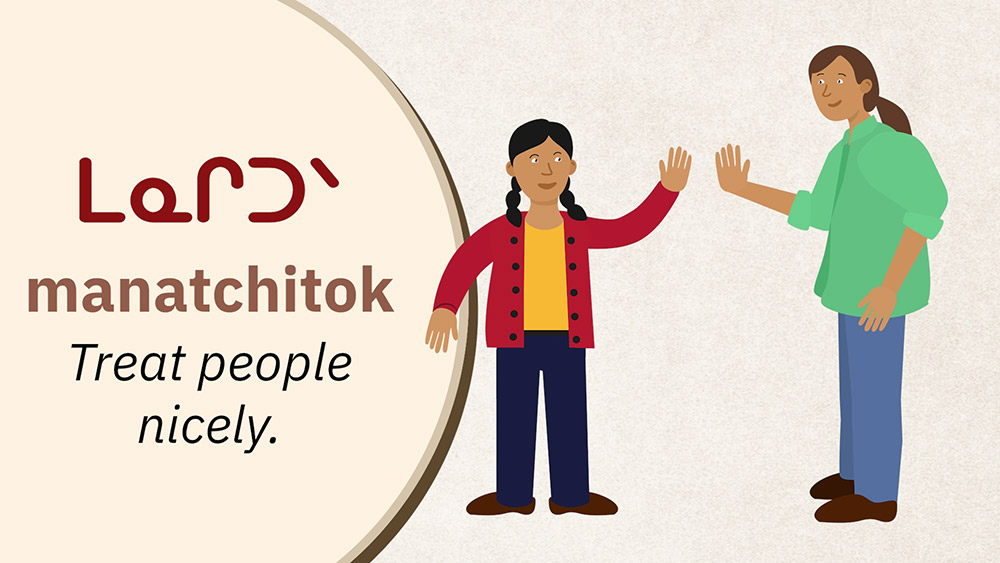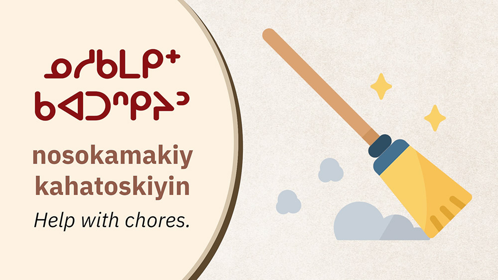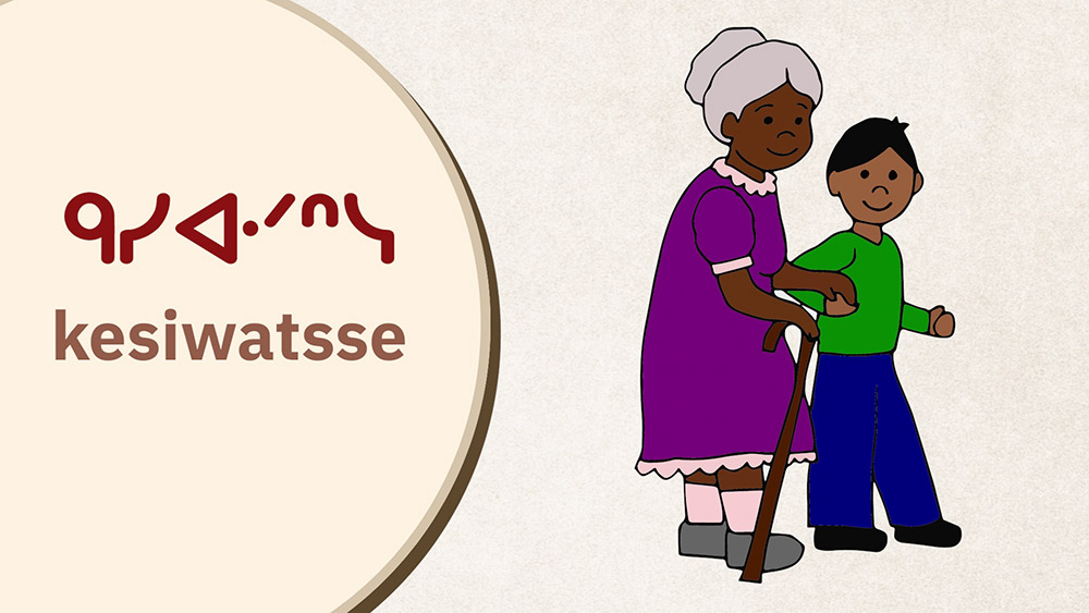 See pictures from a video that pronounces and shows Woodland Cree words and phrases about helping others and being kind.