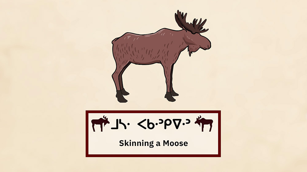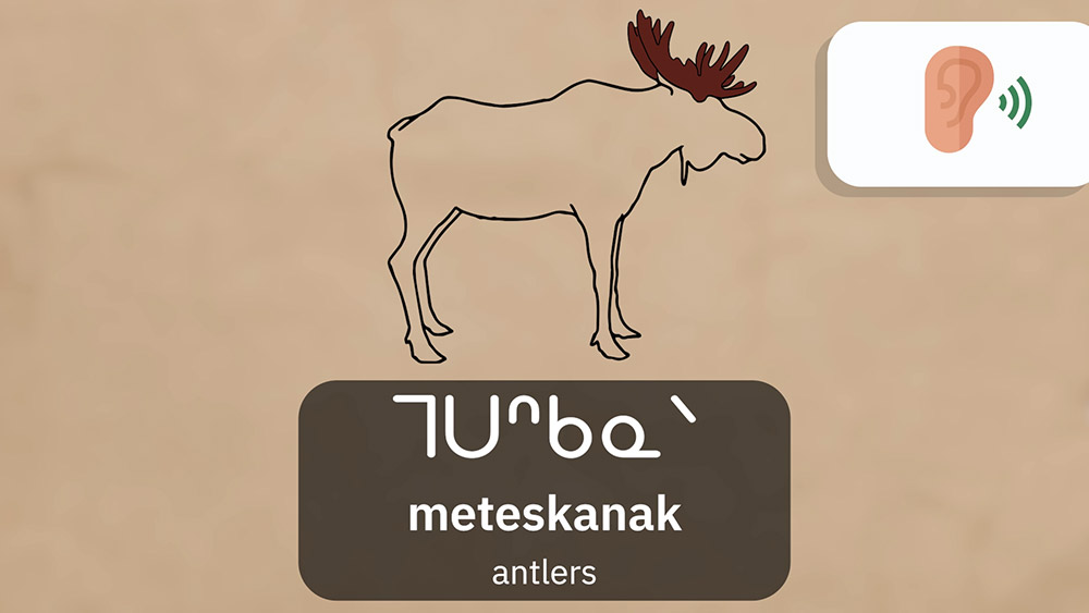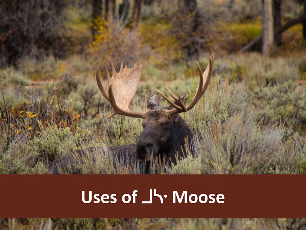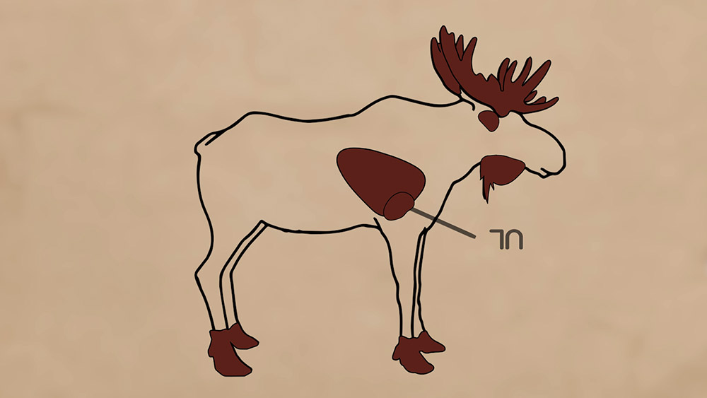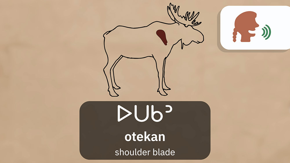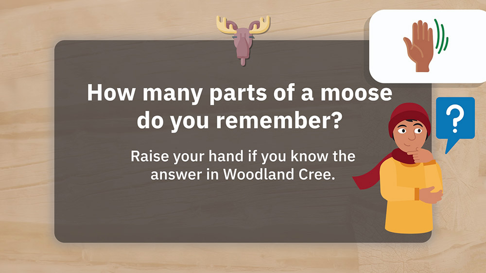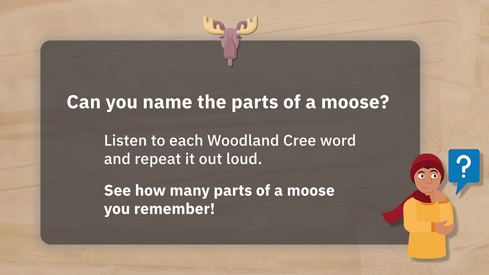 See pictures from a video that helps learners practice using Woodland Cree vocabulary to identify different parts of a moose.