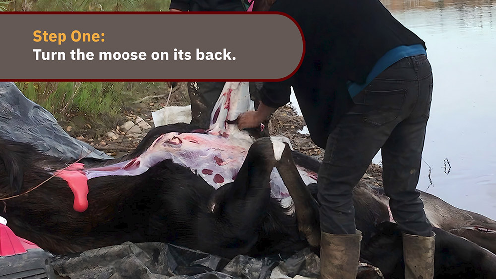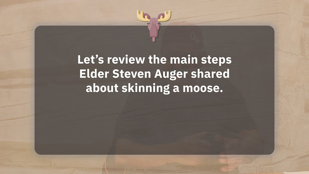 See pictures from a video where learners listen to Elder Steven Auger explain how to skin a moose.