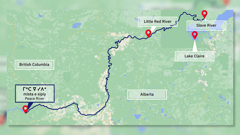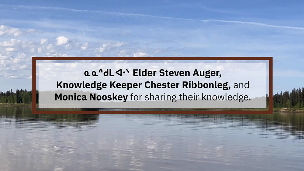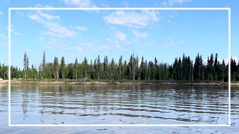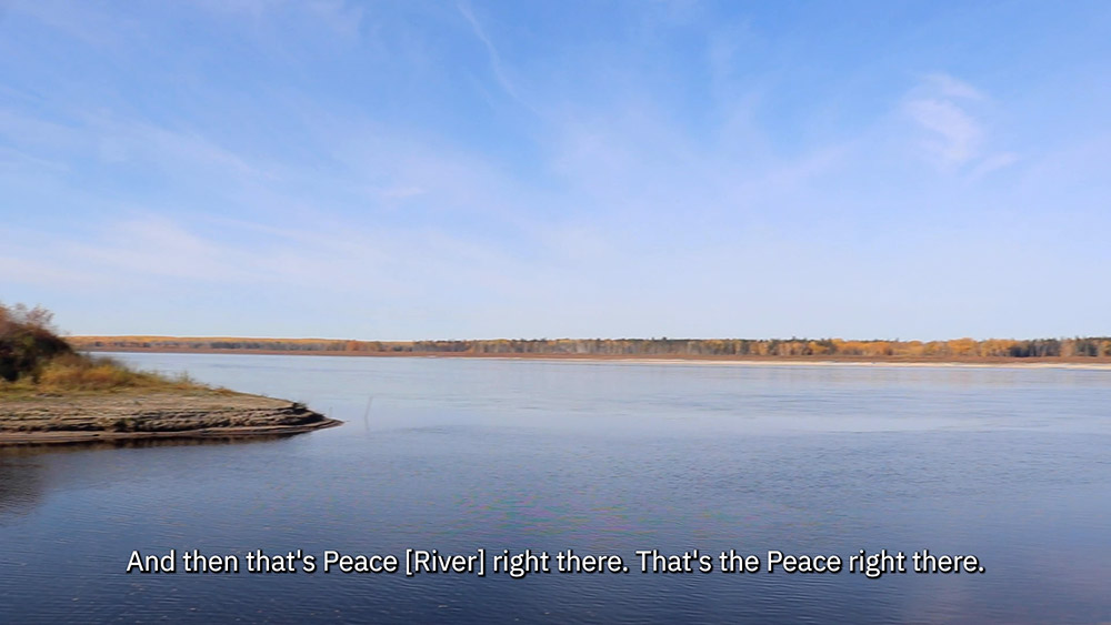 See pictures from a video where learners learn about the ᒥᐢᑕ ᐁ ᓯᐱᐩ Peace River, including where it flows, which rivers it feeds, and how human activities have changed the river.