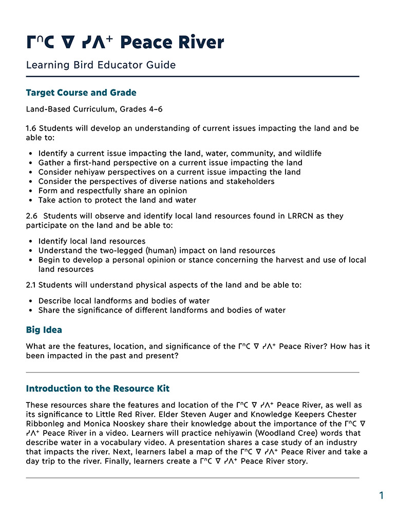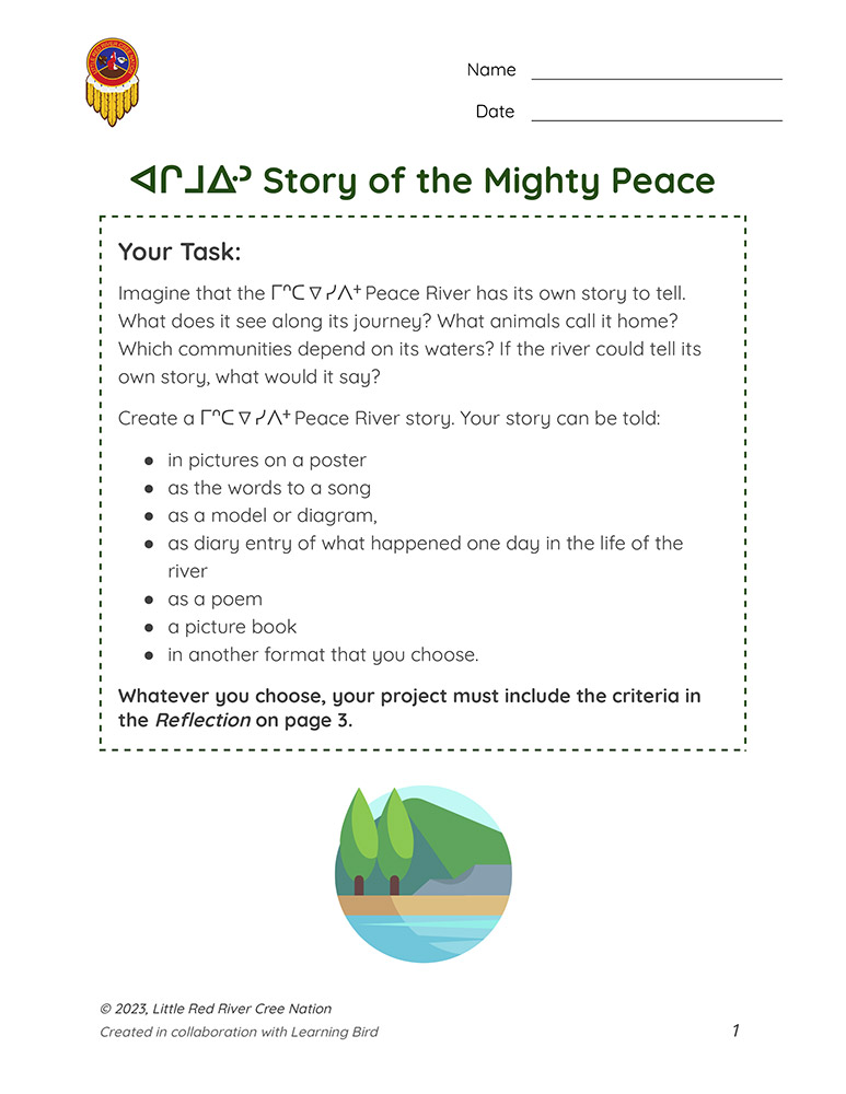 In this handout, learners create a project showcasing what they’ve learned about the ᒥᐢᑕ ᐁ ᓯᐱᐩ Peace River.