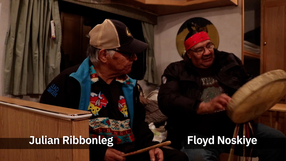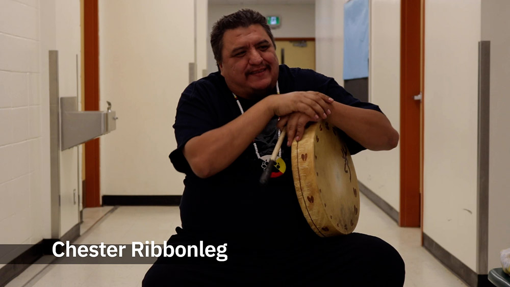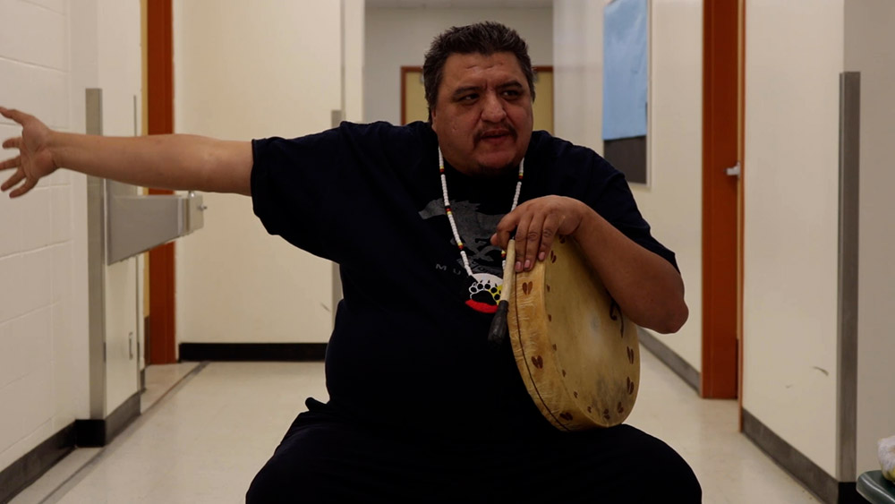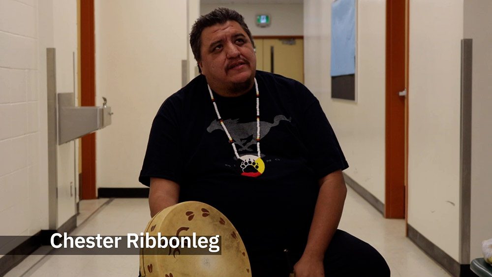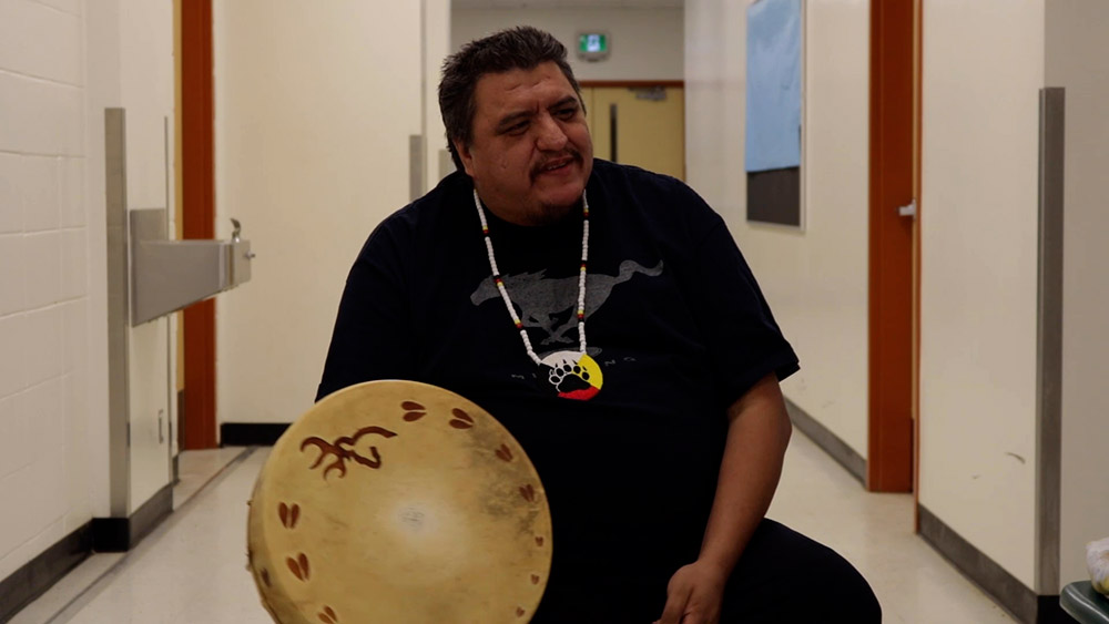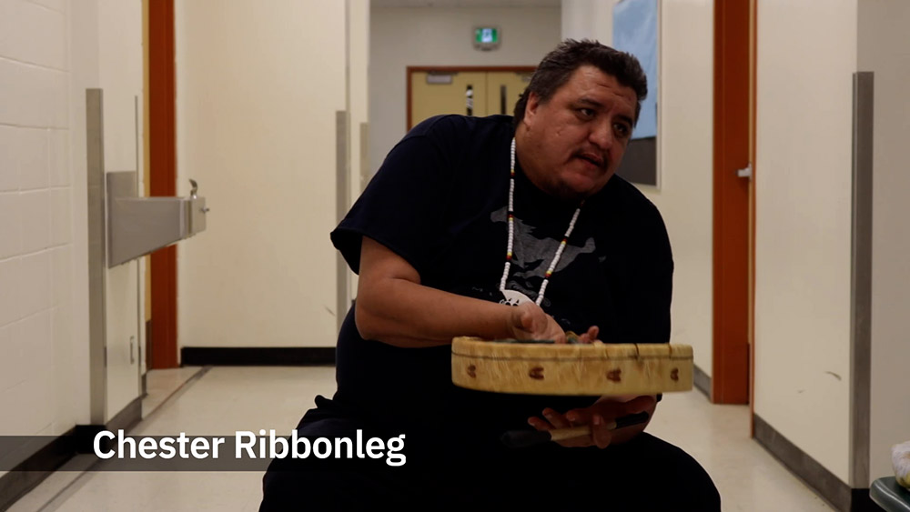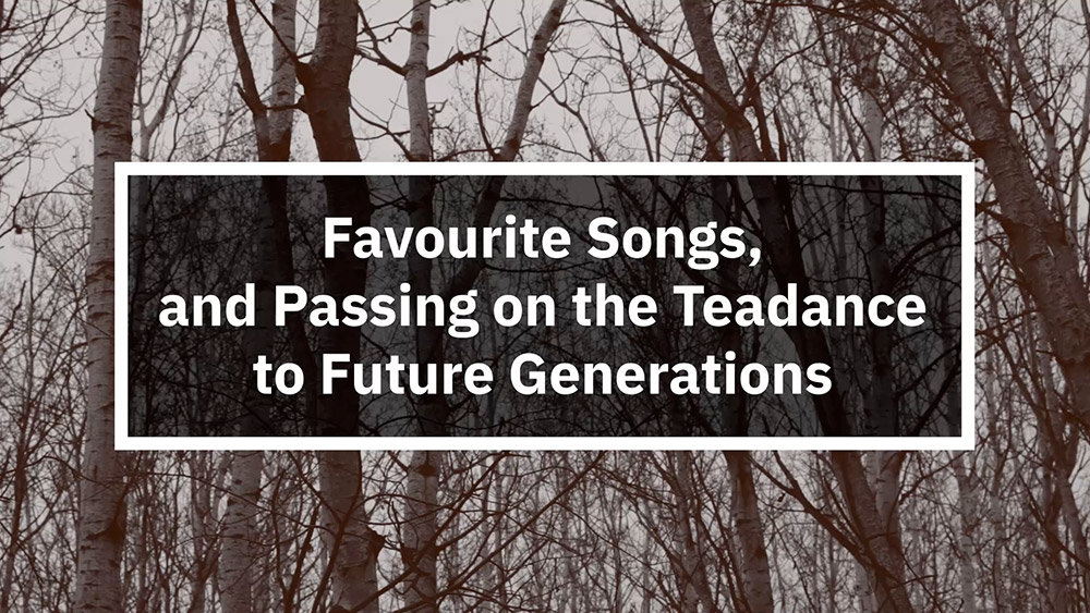 See pictures from a video where learners listen as community members share teachings in Woodland Cree and English about their favourite Teadance songs, how they learned these songs, and how people can continue learning the Teadance and keeping traditions alive.