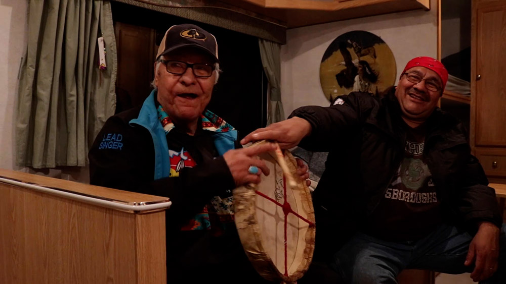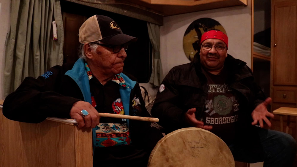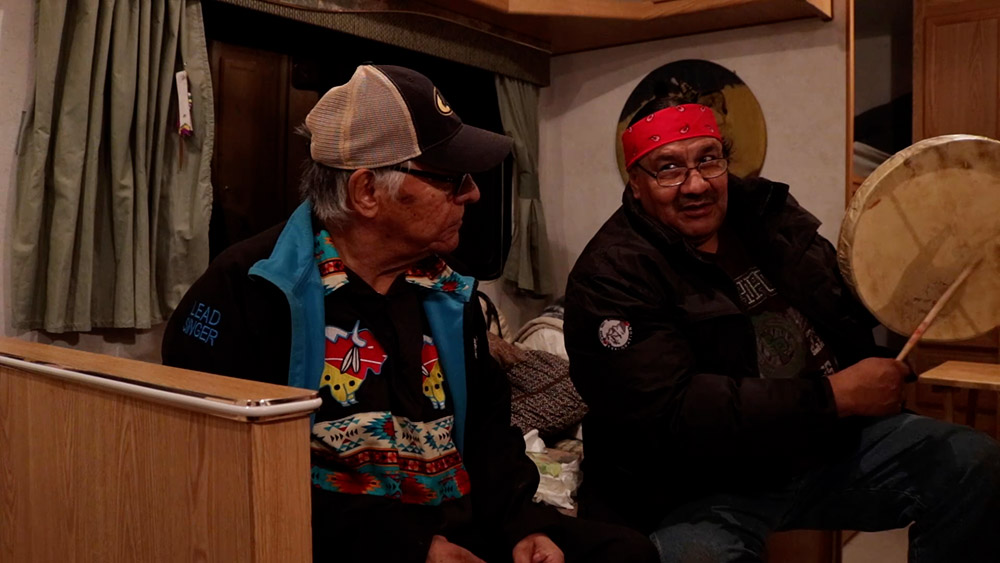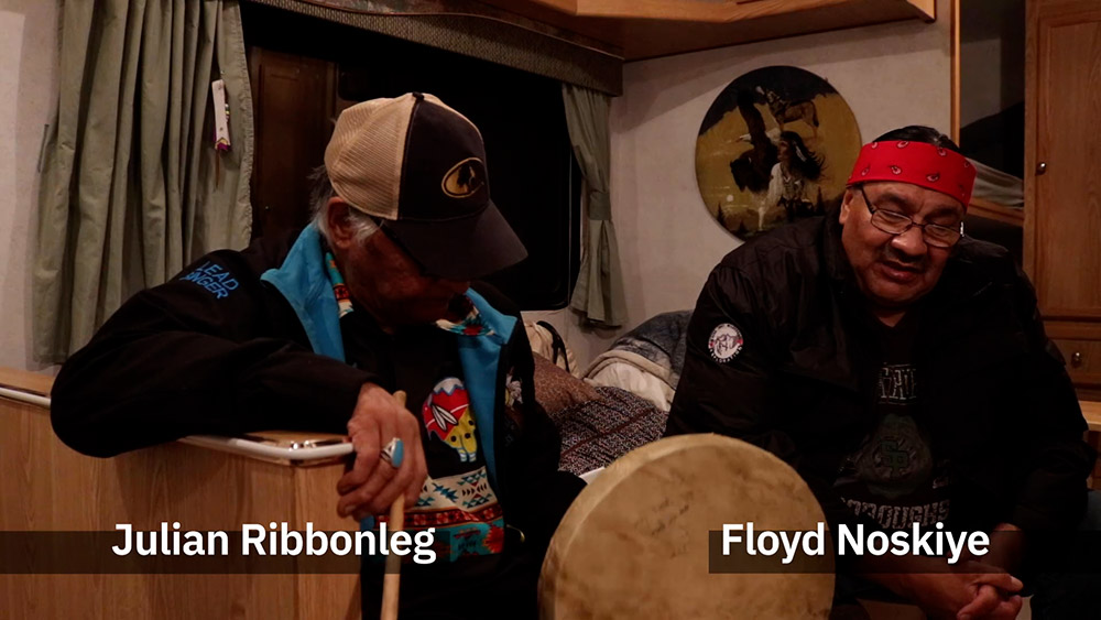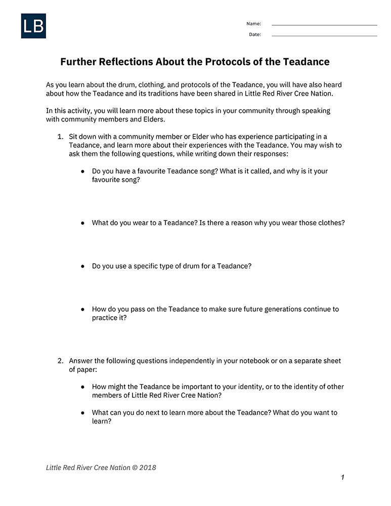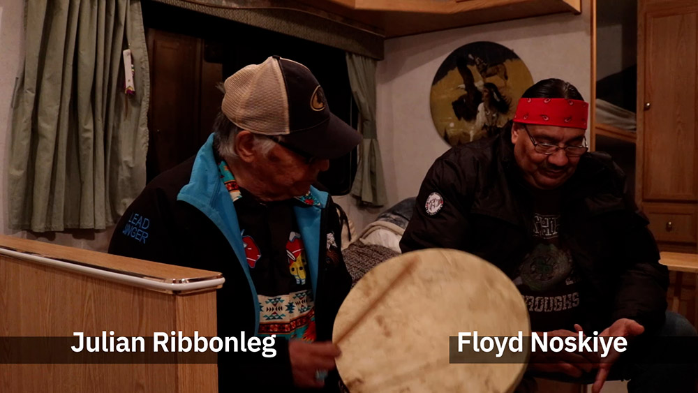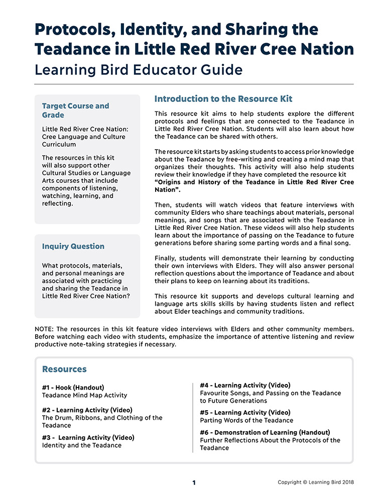 See pictures from a video where learners listen as community members share teachings in Woodland Cree and English about their favourite Teadance songs, how they learned these songs, and how people can continue learning the Teadance and keeping traditions alive.