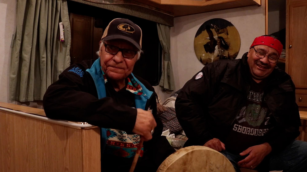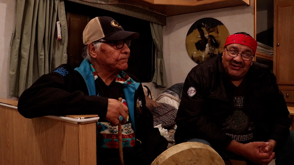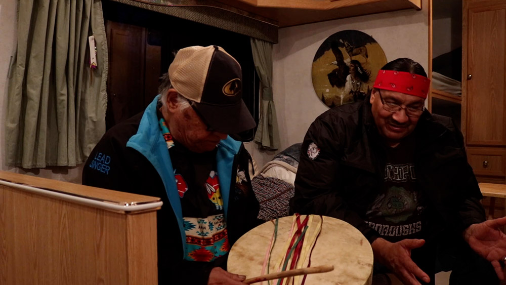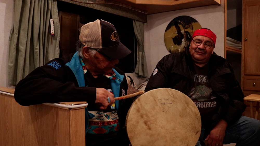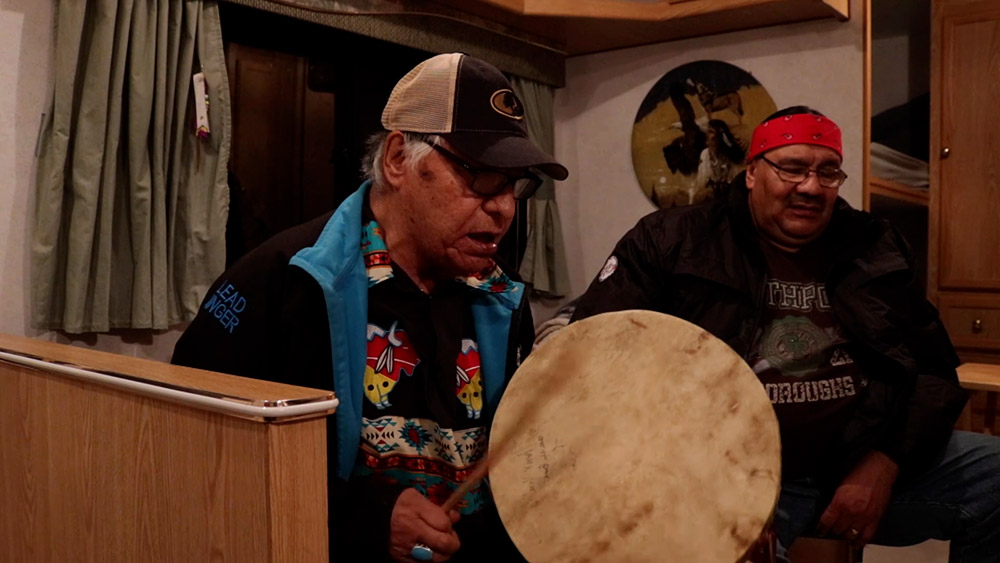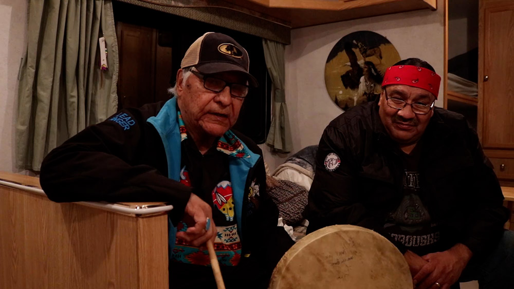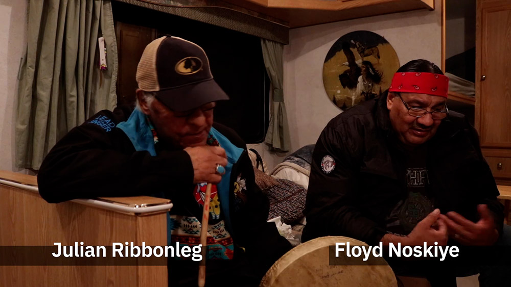 See pictures from a video where learners listen as community members share teachings in Woodland Cree and English about their favourite Teadance songs, how they learned these songs, and how people can continue learning the Teadance and keeping traditions alive.