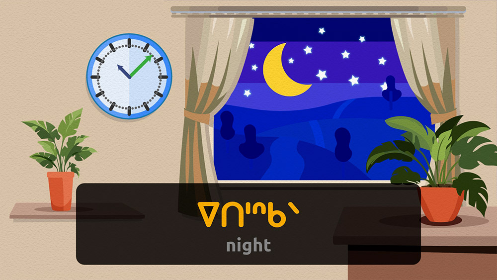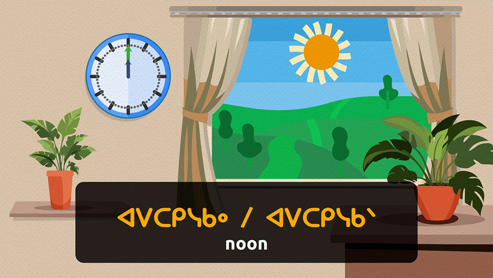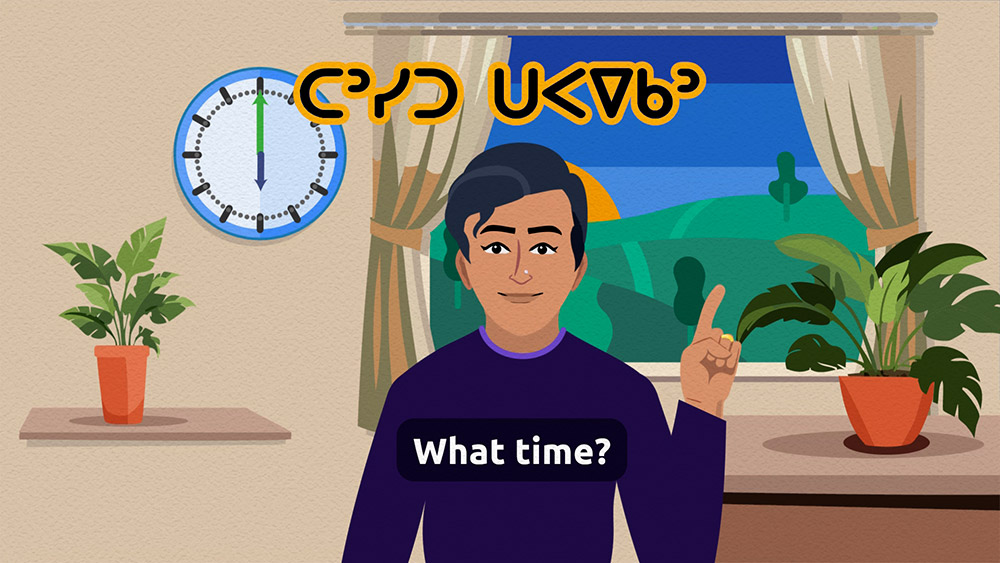 See pictures from a video where learners practice naming the time of day in Woodland Cree.