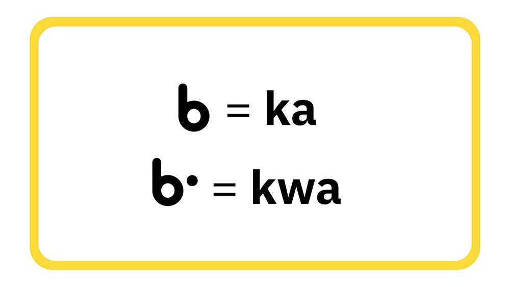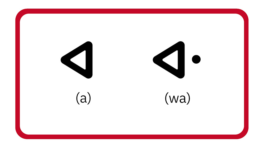 See pictures from a video that practices reading and writing the・(w-sound) at the beginning or middle of a word.