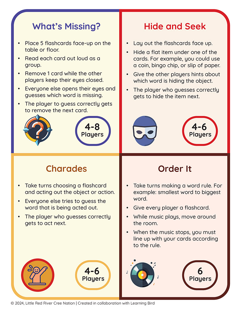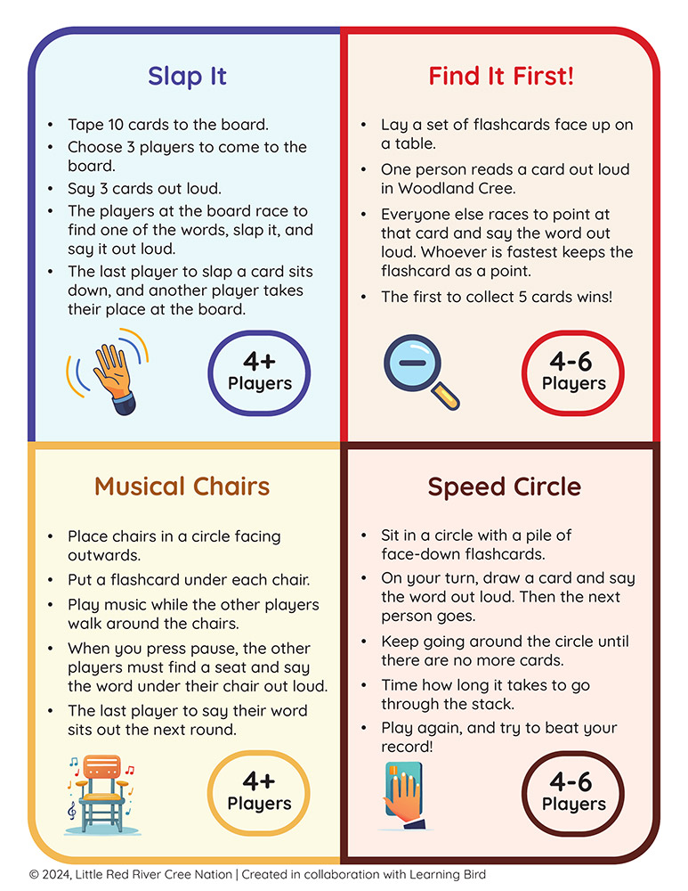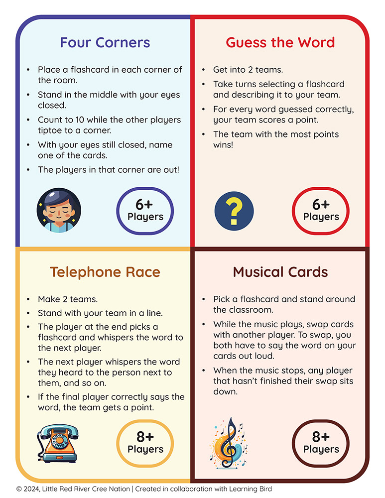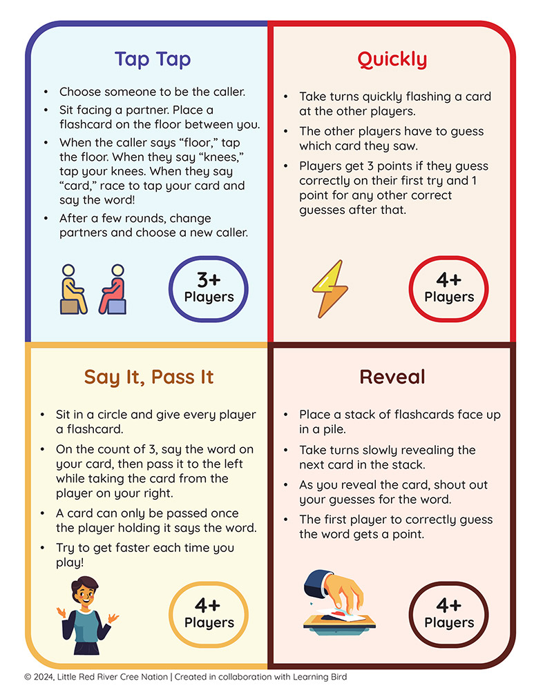 These instructions offer self-directed activities learners can engage in using the flashcards.
